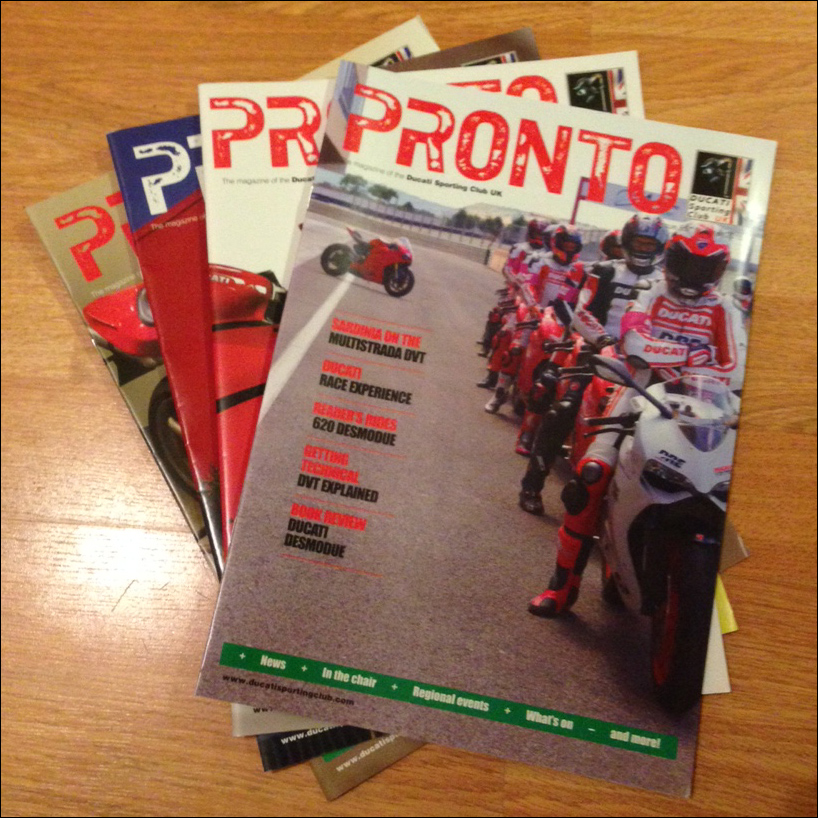 Now available to purchase! Back-copies of "Pronto" the Magazine of the Ducati Sporting Club UK!
