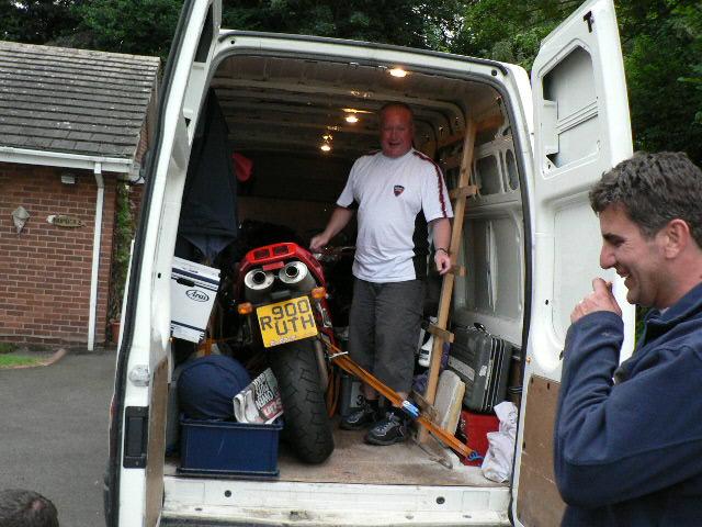My bike in with the two race bikes (at the front of the van) and an entire weekends racing equipment. Should have got a picture of Antonye travelling, seated in his England chair and drinking beer all the way home