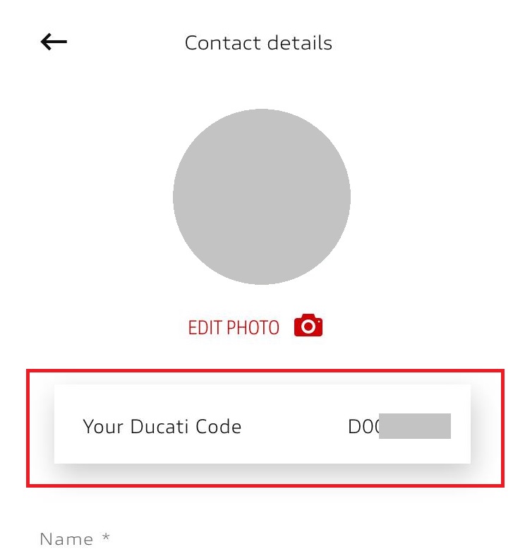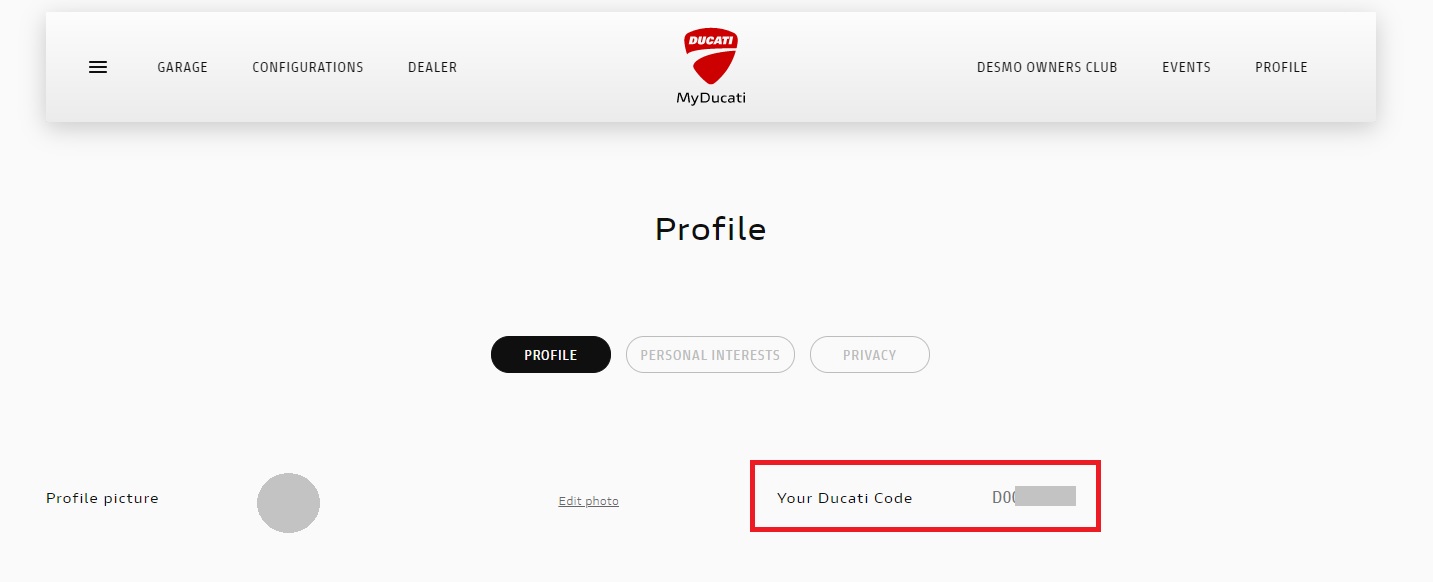 To find out your Ducati Code, you can login to My Ducati and see this as part of your profile, either on the website or through the My Ducati App.