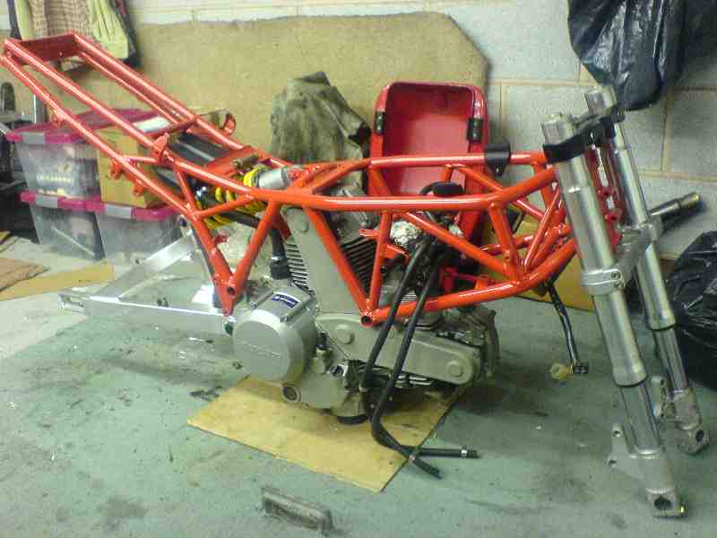 My bikes running, sprayed the frame & swing arm. Then got bored so i'm now fitting an oil cooler. Dom I've told John to detune your bike for next year. LOL.(only joking?)